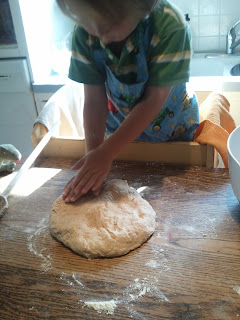 Pounding and kneading the dough is a lot of fun for a little boy!